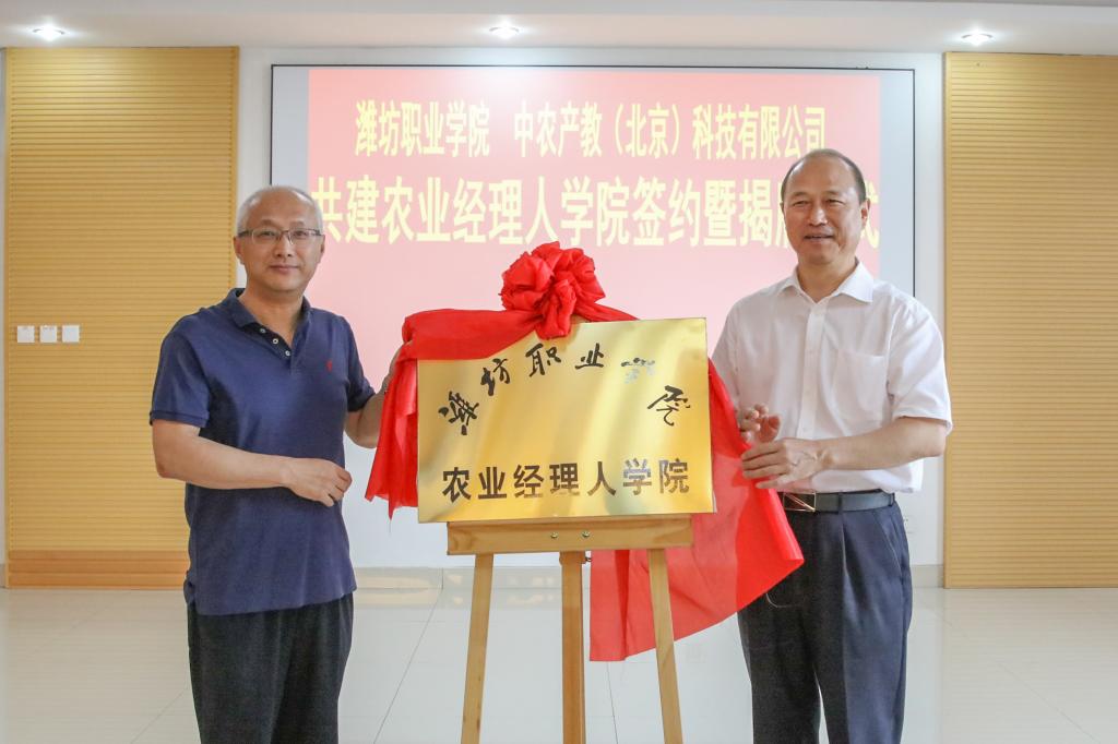 6月10日下午,天行体育官方网站与中农产教(北京)科技有限公司共建农业经理人天行体育官方网站签约暨揭牌仪式在滨海校区清泽楼会议室举行。天行体育官方网站党委书记马跃启、副院长贺志强,农业农村部人力资源开发中心副主任吴金玉,农业农村部人力资源开发中心职业技能鉴定处处长何兵存,中农产教(北京)科技有限公司总经理、中信农业科技股份公司总经理助理、中国农业经理人发展联盟副会长、秘书长纪绍勤,中农产教(北京)科技有限公司潍坊运营中心负责人、中国...更多 -