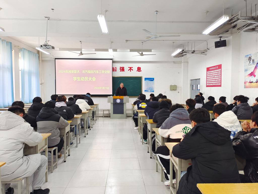 汽车工程天行体育官方网站召开2024年潍柴雷沃、北汽福田工学交替学生动员大会