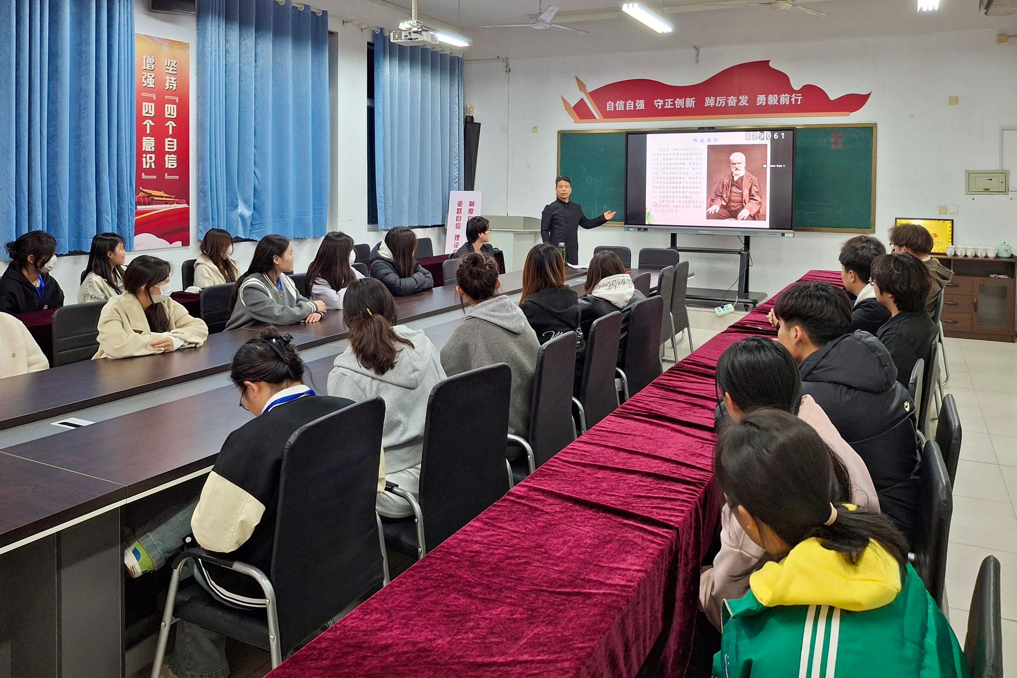 为营造和谐文明的校园文化氛围,丰富学生课余生活,增进学生对文学艺术的了解与热爱,提升其艺术素养,3月21日,通识教育中心导师卢京欣走进绿竹社区,开展了一场别开生面的“小说”大课堂进社区活动。活动中,卢老师凭借深厚的文学功底与生动的讲解风格,为同学们呈现了一场小说作品的艺术盛宴。他从法国文豪雨果的生平经历切入,深入剖析其文学成就对世界文学史的深远影响。在解读经典小说《巴黎圣母院》时,卢老师不仅声情并茂地梳理了故事主线,...更多