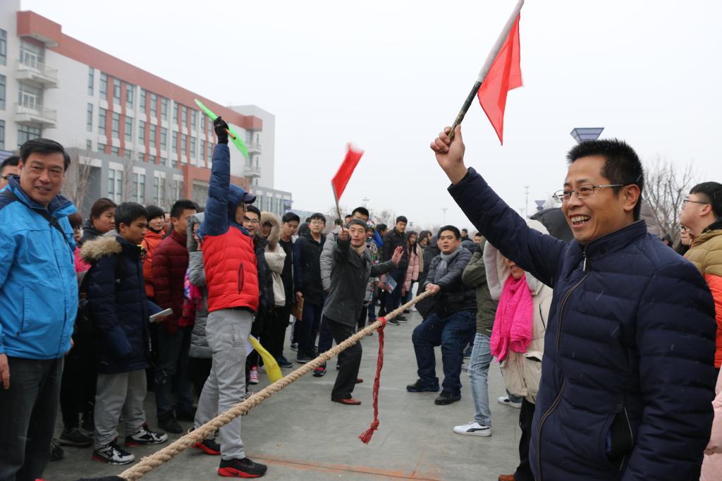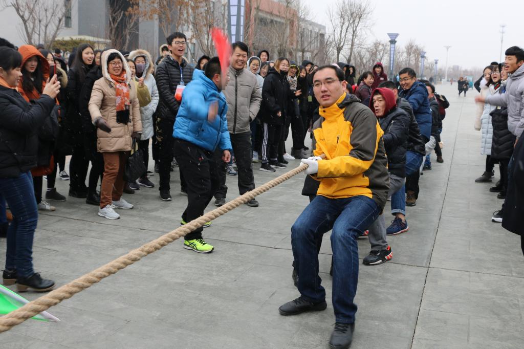 12月14日,伴着潍坊的第一场瑞雪,天行体育官方网站工会在滨海校区图书馆楼前举行教职工拔河比赛,全院各部门、二级天行体育官方网站共分为9只代表队参赛。