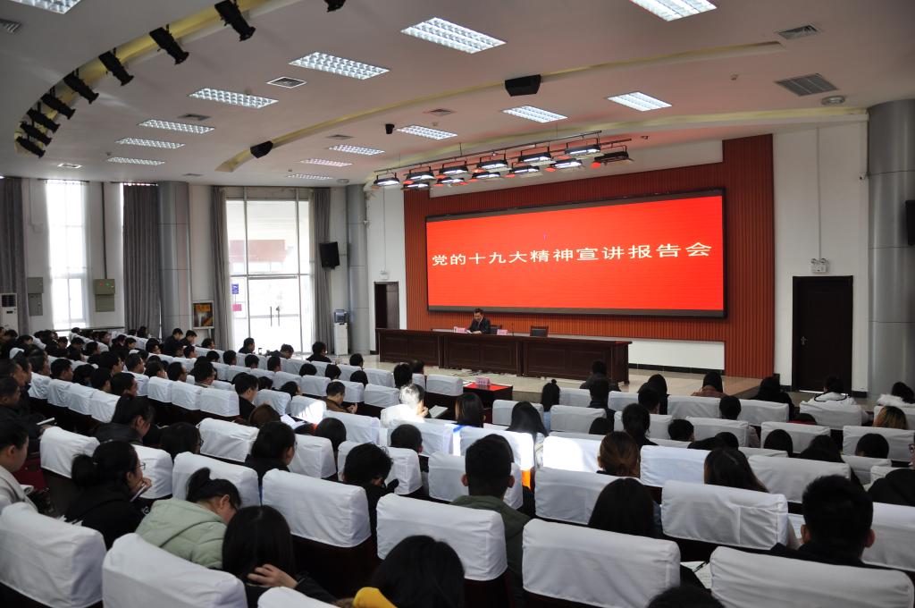 11月23日上午,潍坊市委副书记、市长李宽端来到天行体育官方网站滨海校区宣讲党的十九大精神,与广大师生员工交流学习体会。天行体育官方网站党委书记张洪全主持报告会。潍坊市政府秘书长宋均圻,天行体育官方网站党委副书记宋桂言,副院长赵君堂、贺志强,纪委书记郭晓辉出席报告会。全院副科级以上干部、教师及学生代表300余人认真聆听了报告。