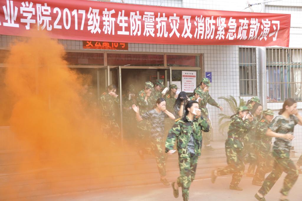 我院举行2017级新生防震抗灾及消防紧急疏散演习