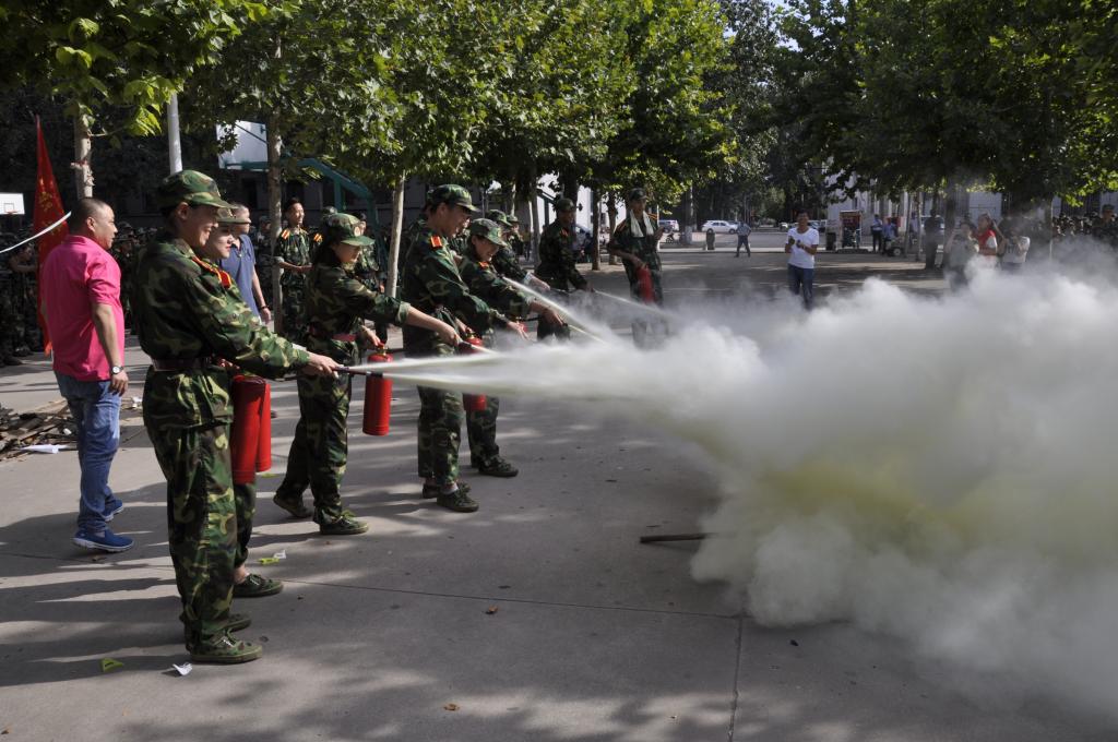 14点40分,随着演习总指挥一声令下,演习正式开始。模拟火险现场,工作人员拉开发烟罐,警报器随之响起,同学们在辅导员、班主任及宿舍管理人员的引导下,做着规避动作,按照规定线路向各校区操场迅速撤离,到场地清点人数并向演习总指挥报告,消防人员对滞留在公寓楼的学生进行了高空救援,整个疏散过程时间短、速度快,井然有序,达到预期效果。随后进行消防灭火演练,消防大队教官向新生们讲解了消防知识并对灭火器使用方法进行了演示,部分学生在消防人员的指导下体验使用了灭火器。