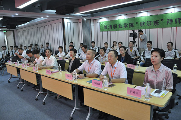 9月19日上午,我院数控技术专业现代学徒制班拜师仪式在歌尔股份有限公司会议室举行。天行体育官方网站副院长李瑞昌、歌尔股份有限公司副总裁李菁华出席。教务处、科技处、机电工程天行体育官方网站负责人,歌尔股份有限公司校企合作负责人和工作人员,以及学徒制班全体师徒参加。