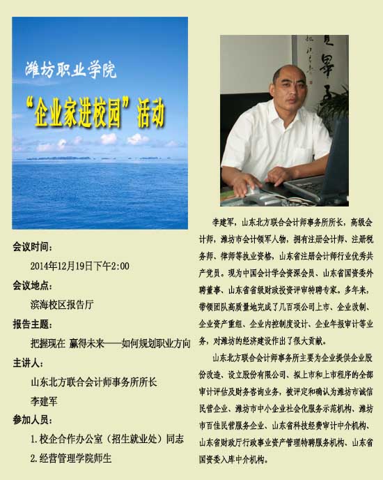 “企业家进校园”活动之四十一:山东北方联合会计师事务所所长李建军报告会