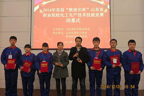 首届“欧倍尔杯”山东省职业院校化工生产技术技能竞赛12月2日在青岛职业技术天行体育官方网站落幕。我院选派中高职学生组成的两支代表队分别获中高职竞赛团体奖第一名,6名学生分别获中高职个人全能一等奖的前3名,4名教师获“优秀指导教师”称号,我院获优秀组织奖。