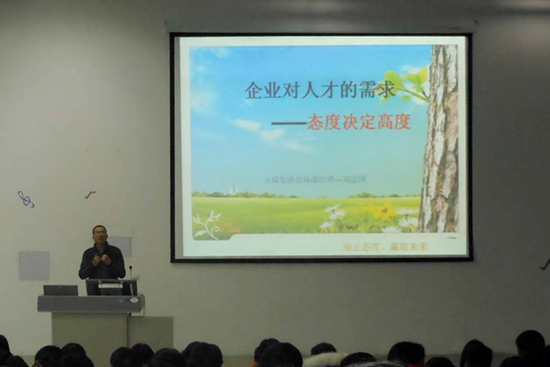 11月27日下午,农业工程天行体育官方网站邀请玉成集团市场部经理刘忠国作了题为“企业对人才的需求”的讲座。农业工程天行体育官方网站滨海校区全体学生和部分教师参加了讲座。
