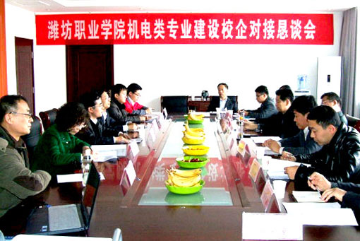 为推动名校建设工作进程,深化校企合作,提高专业建设水平和人才培养质量,11月20日下午,在潍坊市机电设备职教集团年会上,机电类专业建设校企对接恳谈会在滨海校区清泽楼222会议室召开。山东三元工业控制自动化有限公司、山东乐航节能科技股份有限公司、歌尔声学股份有限公司、山东捷远电气股份有限公司等十几家知名企业的总经理、人力资源部部长,机电工程天行体育官方网站负责同志以及各专业教研室主任和教师代表参加了会议。