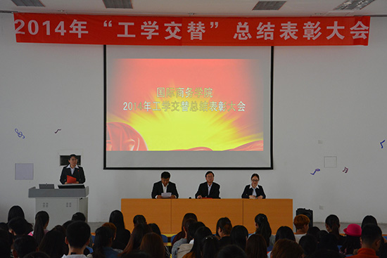 国际商务天行体育官方网站2014年工学交替总结表彰大会于10月20日下午在滨海校区报告厅举行。该院负责同志、企业代表、教师与2012级和2013级全体在校学生参加了大会。
