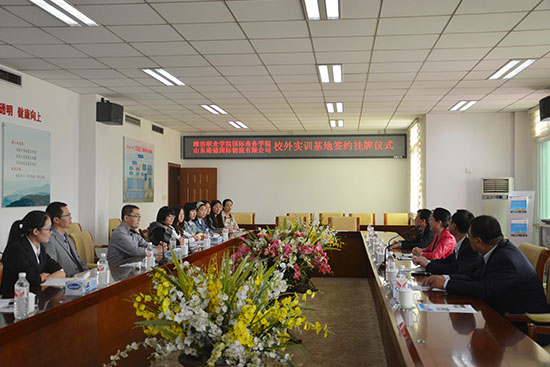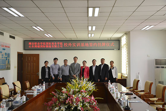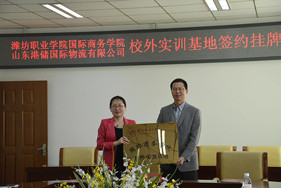 10月18日,国际商务天行体育官方网站主要负责同志及相关教师赴山东港储国际物流有限公司参加校企共建校外实训基地挂牌仪式。国际商务天行体育官方网站主要负责同志与公司副总经理孙刚共同为实训基地挂牌,签署了校企共建校外实训基地协议书,并就校企深度合作的具体事宜进行了洽谈。公司总经理助理、潍坊销售区域经理李凤元及办公室主任出席了此次校外实训基地签约挂牌仪式。
