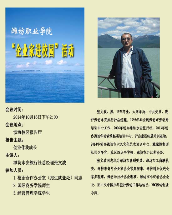 “企业家进校园”活动之三十七:潍坊永安旅行社总经理张文波报告会