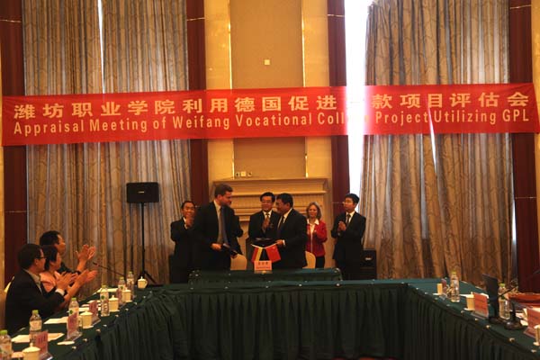 该项目备忘录签订,标志着我院利用德国复兴开发银行贷款,促进职业教育发展项目完成了一个关键环节,进入快速运作阶段。该项目,预计2015年底资金到位,可利用资金折合人民币12818万元。可购置机电工程、汽车工程、化学工程、农业工程、园林工程、信息工程等六个领域1021台(套)新型实验实训设备,将大大提高我院的实验实训水平,提升我院职业技能培养能力。