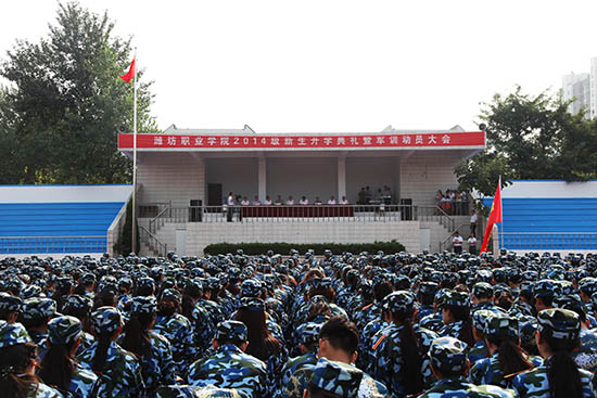 9月1日上午,天行体育官方网站2014级新生开学典礼暨军训动员大会在奎文校区体育场隆重举行。潍坊市政府党组成员、天行体育官方网站党委书记陈仁杰,天行体育官方网站院长王家爱,奎文区人民武装部副部长许广晨,驻潍某部副营长郭仕宁,天行体育官方网站党委副书记宋桂言,天行体育官方网站副院长赵君堂、贺志强、毕建华,天行体育官方网站纪委书记李瑞昌出席。大会由宋桂言主持。