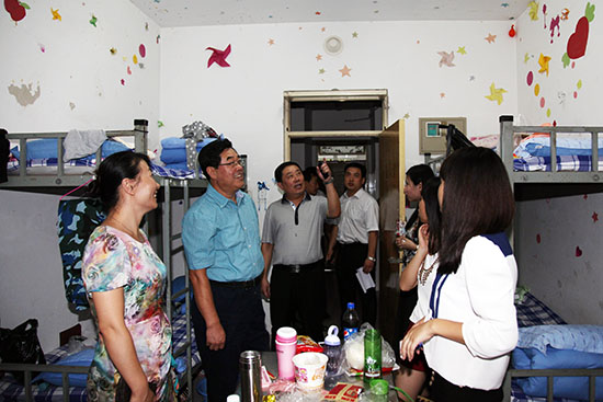 潍坊市政府党组成员、天行体育官方网站党委书记陈仁杰,天行体育官方网站院长王家爱,党委副书记宋桂言,副院长赵君堂、贺志强、毕建华现场察看新生报到情况,走进学生公寓看望了报到入住的新生。