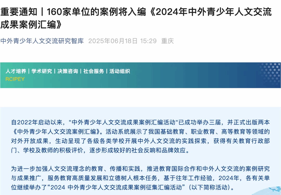 天行体育官方网站案例入选教育部《2024年中外青少年人文交流成果案例汇编》