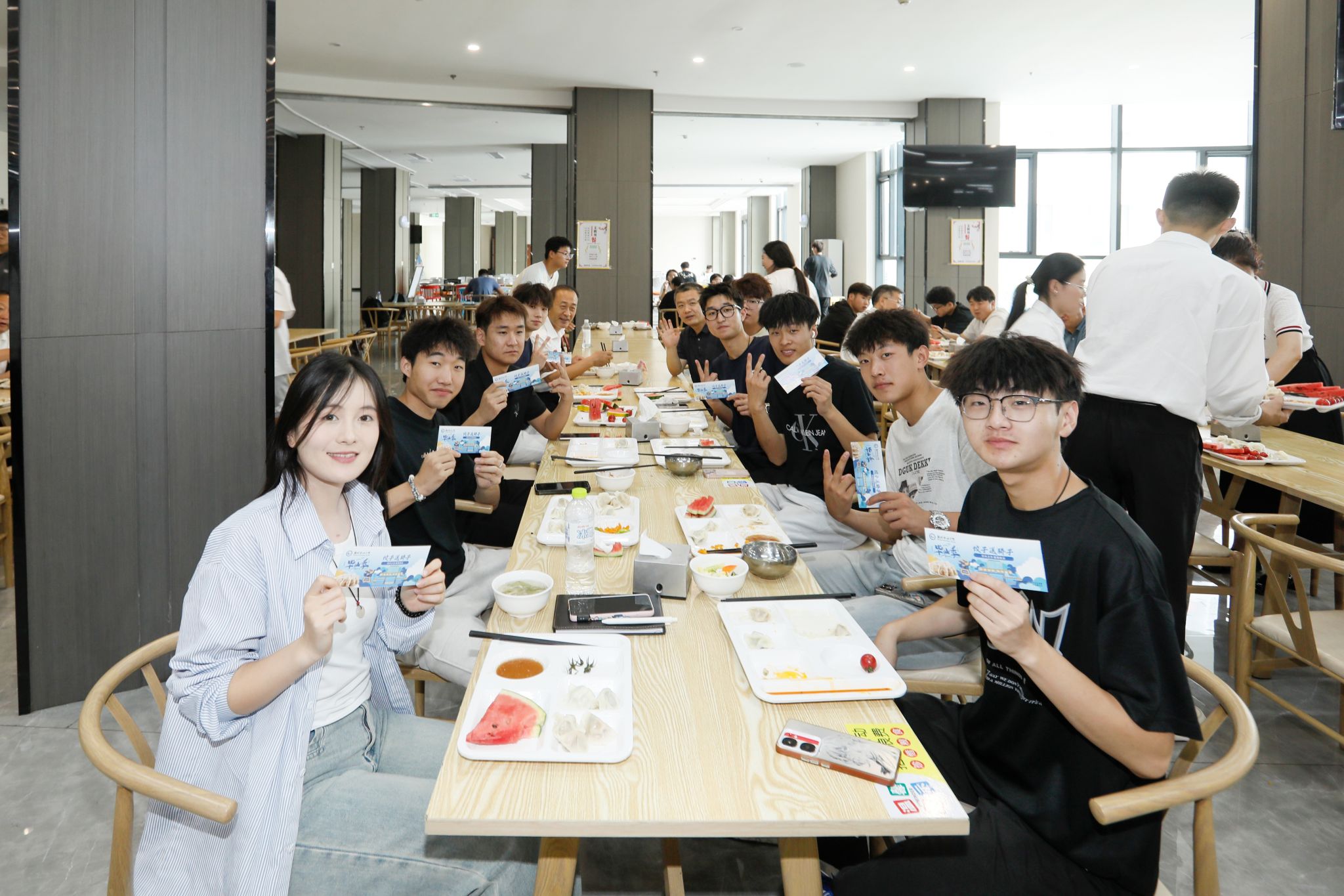 典礼开始前,毕业短片《一路生花》追忆了同学们在潍职求学的美好时光;仪式过程中,20名毕业生手捧鲜花,在音乐伴奏下庄重献予恩师;典礼结束后,毕业生与老师们共聚天行体育官方网站国际交流合作中心,共享“骄子水饺”,同话师生情谊。