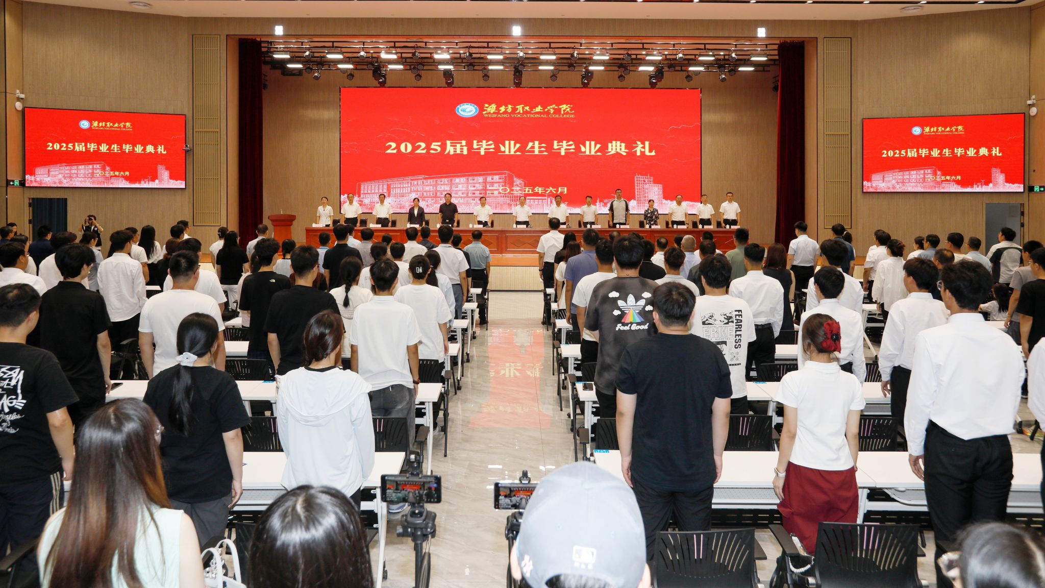 6月28日上午,天行体育官方网站在滨海校区南区综合楼一楼报告厅举行2025届毕业生毕业典礼暨“青春扬帆新时代”毕业季教育活动。天行体育官方网站党委书记王浩、院长韩瑞东及天行体育官方网站党政领导班子其他成员、企业代表和校友代表出席活动,各职能部门主要负责人,各二级天行体育官方网站党政负责同志、分管学生工作负责同志、毕业班级教师、辅导员代表,毕业生及亲友代表等350余人在现场参加毕业典礼,其他毕业生和家长通过线上直播方式参加毕业典礼。