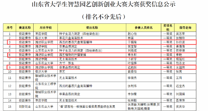 近日,由山东省科学技术协会、山东省教育厅等部门联合主办的第十七届山东省大学生科技节——山东省大学生智慧园艺创新创业大赛公布获奖结果。经大赛评审,共评选出一等奖36项、二等奖85项、三等奖113项。我院参赛作品在比赛中表现优异,共荣获3个一等奖,在全省职业院校中名列第一。