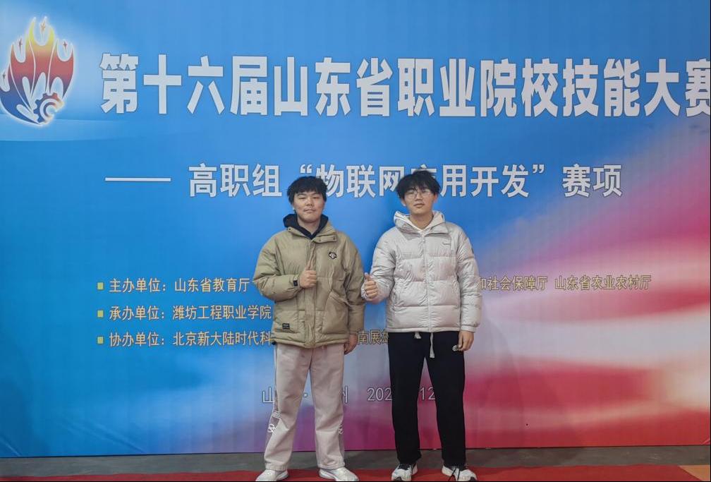 近日,2023年山东省职业院校技能大赛(高职组)“物联网应用开发”赛项在潍坊工程职业天行体育官方网站举办,来自全省的56支高职院校代表队参加了本次比赛。经过激烈角逐,由我院鲁岩松、李先萌两名同学组成的代表队,经过4个小时的顽强拼搏,最终荣获二等奖。