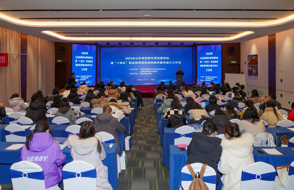 12月15日,由我院与上海外语教育出版社共同举办的“2023年山东省高职外语发展论坛暨十四五职业教育国家规划教材教学设计工作坊”研讨会在潍坊圆满结束。天行体育官方网站党委委员、宣传部部长刘泓蔚,教育部高等学校大学外语教学指导委员会委员、南京大学教授、博士生导师王海啸,教育部职业院校外语专指委委员、山东外贸职业天行体育官方网站教授崔卫,上海外语教育出版社山东地区负责人李海峰出席了研讨会。会议由国际商务天行体育官方网站负责人主持。来自省内高职院校外语专业、公共外语教研室的带头人、骨干教师以及我院国际商务天行体育官方网站教师约100人参加了研讨会。
