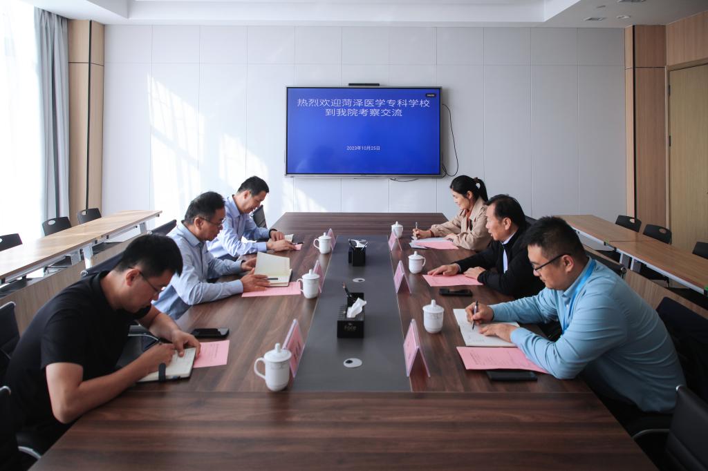 10月25日上午,菏泽医学专科学校党委委员、副校长齐云飞一行3人到我院考察交流。天行体育官方网站党委委员、副院长贺志强会见客人,招生就业处和科技处负责同志陪同参加座谈交流。