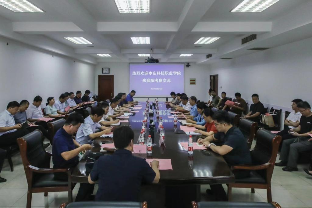 7月16日下午,枣庄科技职业天行体育官方网站党委书记谢宝华、党委副书记、院长闵祥寨带领领导班子成员及部门中层干部一行约40人到我院考察交流。天行体育官方网站党委副书记韩瑞东,天行体育官方网站领导李瑞昌,党委委员、办公室(统战部)主任(部长)任培华会见客人,组织人事处、学生工作处、教师工作部、教务处、科技处、发展规划处负责同志参加座谈。