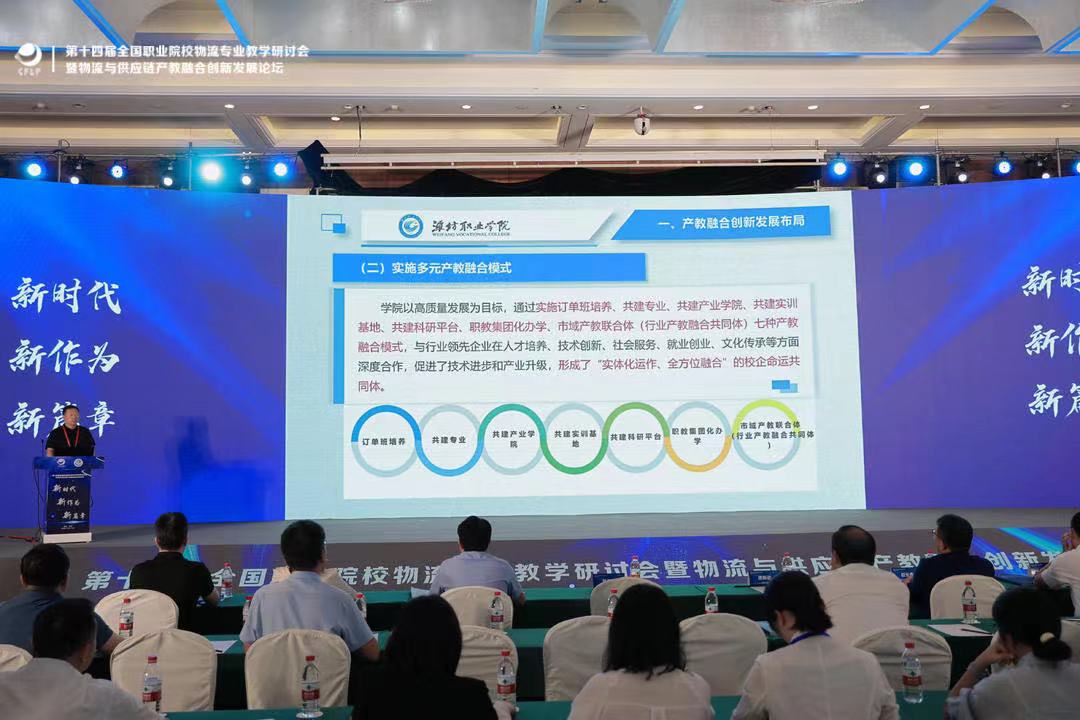 研讨会以“新时代、新作为、新篇章”为主题,围绕产业发展对物流职业教育人才培养工作的新要求,就双高校建设、教师教学创新团队建设、产教融合与企业人力资源建设、“三教”改革、课程思政建设、“双师型”师资队伍建设、国际化合作办学、数字化实训实践创新等内容进行深入交流和研讨。贺志强介绍了我院以高质量发展为目标,在深化产教融合、校企合作等方面的做法与成效。一是产教融合创新发展布局。我院专业群布局不断优化,由“1135”向“244”迈进,持续为区域产业升级赋能。聚焦智能制造、智慧农业等区域支柱产业,梯次建设10个专业集群,专业与产业布局高度契合。通过实施订单班培养、共建专业、共建产业天行体育官方网站、共建实训基地、共建科研平台、职教集团化办学、市域产教联合体七种产教融合模式,与行业领先企业在人才培养、技术创新、社会服务、就业创业、文化传承等方面深度合作,促进了技术进步和产业升级,形成了“实体化运作、全方位融合”的校企命运共同体。二是产教融合创新发展实践。以农林类、制造类、商贸类、信息类等专业群布局为例,介绍了农林类专业群以高素质职业农民成长成才为主线,以产教融合、双元育人为核心,着力构建服务乡村振兴的人才培育体系,为职业教育服务乡村振兴探索有效路径。制造类专业群发挥全国示范职业教育集团的桥梁作用,以国家级应用技术协同创新中心、技能大师工作室和工程技术研究中心为平台,开展现代学徒制人才培养,形成“平台支持、技术合作、培训支援、国际交流”服务格局。信息类专业群依托国家级协同创新中心与省级技术研发中心,开展教育部首批产学研合作协同育人项目,与达内集团共建“AI+智慧学习”中心,与华为共建全场景智能终端服务人才培养基地。商贸类专业群依托职教集团,汇聚学校、企业、行业资源,与企业合作共建产业天行体育官方网站,校企联合从课程建设,师资培训、产学研基地等方面开展专业建设与人才共育,形成“校行企”多元参与的办学格局。校企共建“一平台三工场四中心”产教融合实训基地,与中国贸促会等单位共建山东省企业合规师培训示范基地,与潍坊市机关事务服务中心共建山东省机关事务标准化实训基地,共同打造高水平标准化“课程体系、师资队伍、实训场地”。成立山东省高等学校物流数字孪生技术研发中心、山东省智能仓储作业技艺技能传承创新中心、极智嘉AI研究院潍坊研究中心等,开展科技研发与技术服务,近几年立项省市级以上课题30余项,每年为中小企业提供技术服务20余项,牵头或参与制定相关职业标准10余项,实现科研与社会服务能力新跨越。