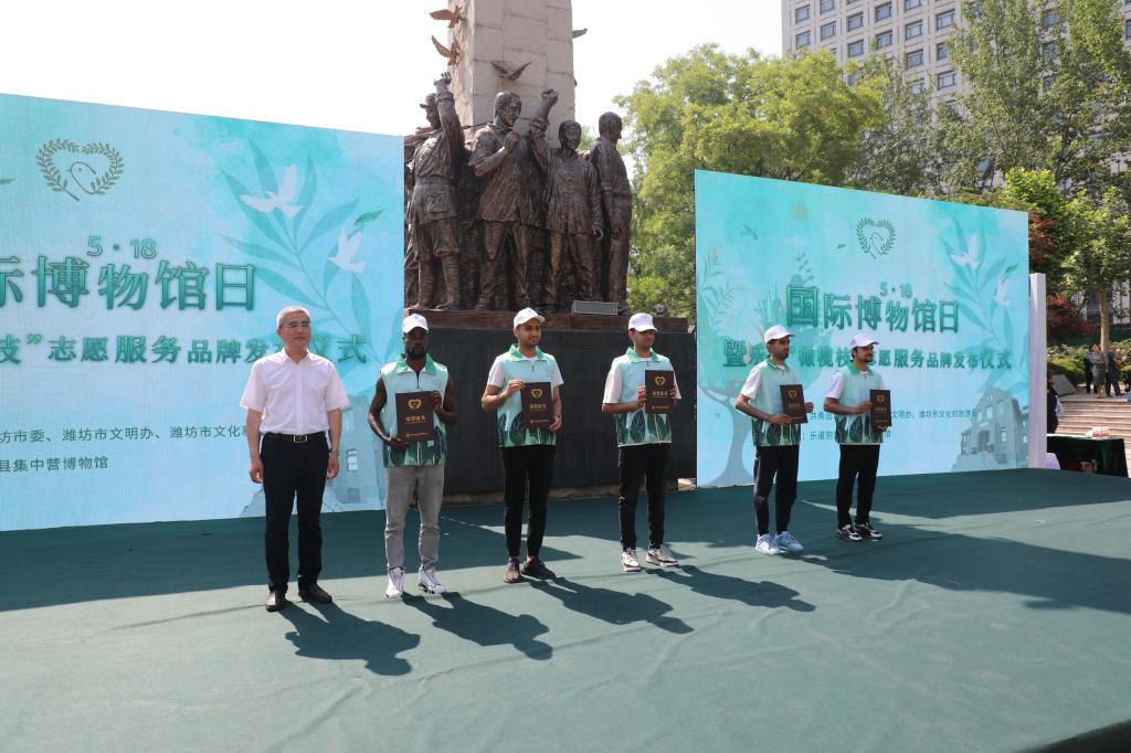2023年“5·18国际博物馆日”主题是“博物馆、可持续性与美好生活”,旨在推动博物馆对于构建美好生活与社会可持续发展的关键性作用。本次活动中,为表彰我院在提供国际志愿服务中所做的贡献,授予我院由共青团潍坊市委等单位颁发的“2022年度博物馆志愿服务优秀组织单位”,并授予我院教师和国际学生“十大杰出志愿者”“优秀志愿者”荣誉。我院国际学生Ismail(伊斯美)作为国际志愿者代表致辞,讲述了国际志愿者们在博物馆志愿活动中所做的翻译、抗疫服务、文化传播等工作,并在志愿服务中提高了沟通能力、收获了真诚友谊,更深层次地了解了中国故事、中国文化。随后,我院国际学生一起演唱了英文歌曲《Light A Candle for Peace(点亮和平之烛)》,并宣读志愿者誓词,表达传递和平声音、致力于互助奉献的志愿者精神。