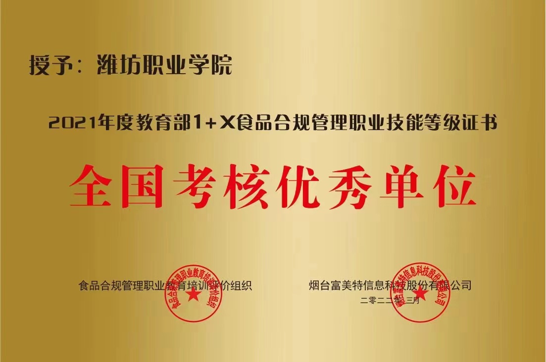 近日,食品合规管理职业技能等级证书2021年度总结表彰暨2022年工作说明会在线上召开,会上公布了食品合规管理职业技能等级证书2021年度表彰名单,天行体育官方网站荣获全国考核优秀单位和领军院校奖。