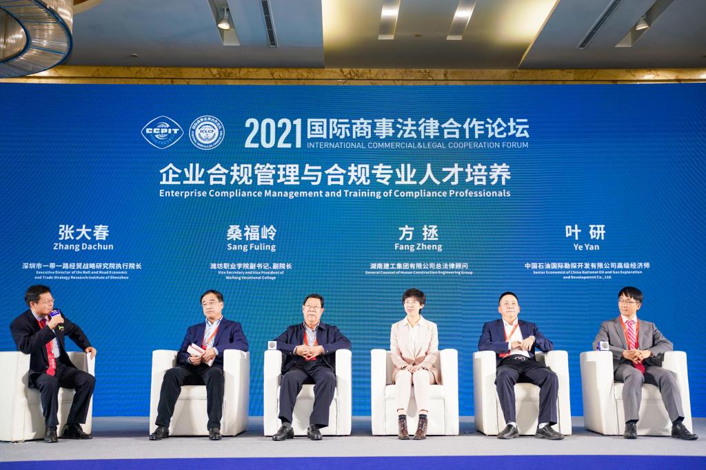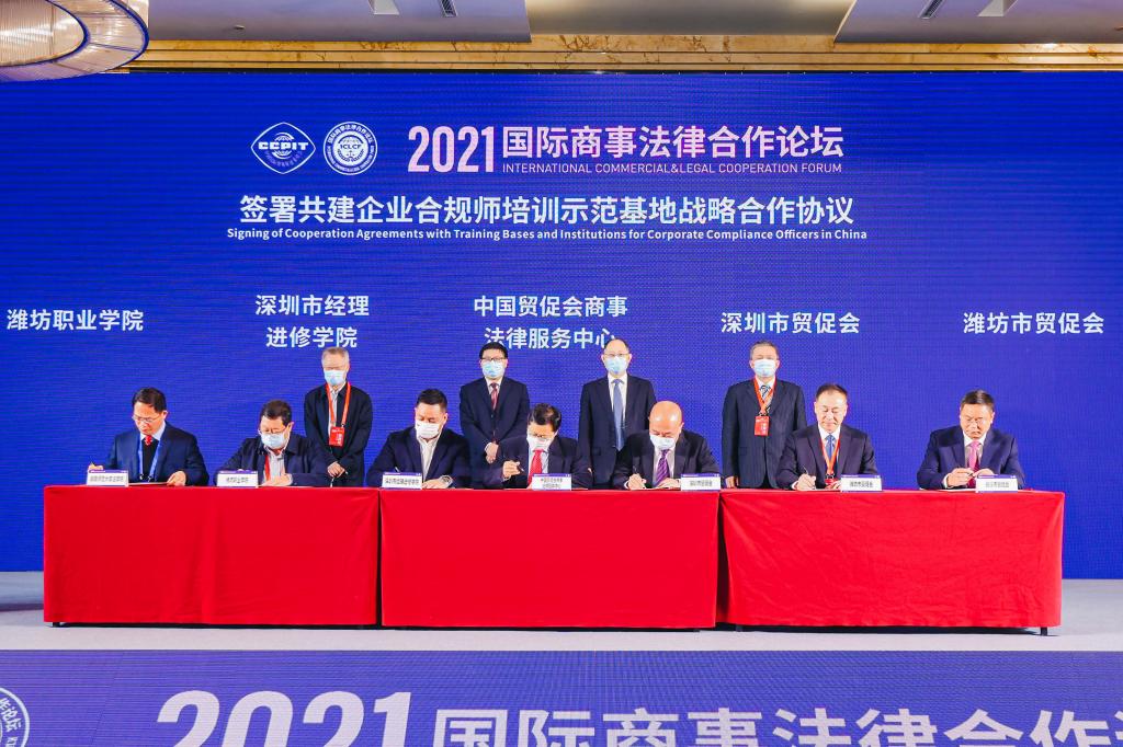 12月15日,由中国国际贸易促进委员会主办,中国国际贸易促进委员会法律事务部和商事法律服务中心、长沙市人民政府承办的“2021国际商事法律合作论坛”在长沙开幕。天行体育官方网站党委副书记、副院长桑福岭应邀参加“企业合规管理与合规专业人才培养”圆桌会议论坛并发表演讲,我院与中国贸促会商事法律中心、潍坊市贸促会共同签署了共建企业合规师产业天行体育官方网站和企业合规师示范培训基地战略协议,全国第一家企业合规师产业天行体育官方网站、第一批合规师示范培训基地落地我院。