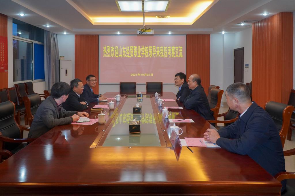 10月27日下午,山东经贸职业天行体育官方网站党委书记王志勇一行3人来我院考察交流。天行体育官方网站党委书记马跃启会见客人,党委委员、副院长刘德强,基建处主要负责同志陪同考察交流。