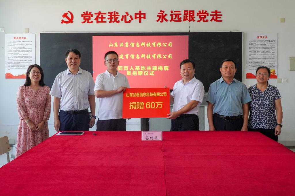 9月10日,天行体育官方网站与山东品茗信息科技有限公司、上海建育信息科技有限公司共建协同育人基地揭牌暨企业软件捐赠仪式在惠泽一号楼举行。天行体育官方网站副院长贺志强、山东品茗信息科技有限公司经理张烨、上海建育信息科技有限公司经理邵永卫、农林科技天行体育官方网站主要负责人及部分骨干教师代表出席仪式。