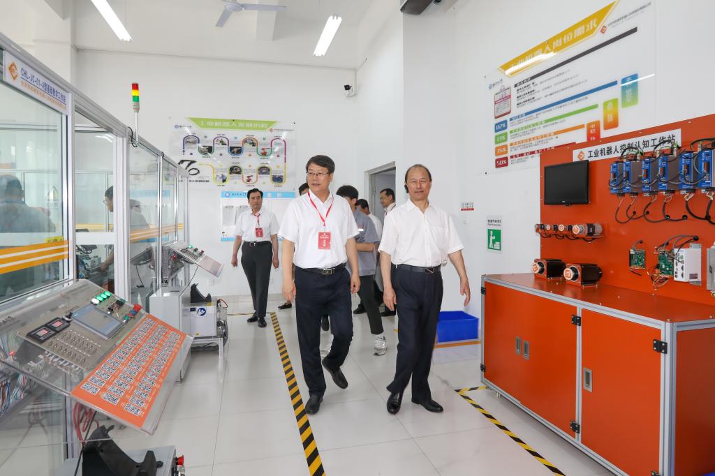 7月9日上午,与会领导、专家参观了学校智慧物流实训室、无人机产学研一体化创新中心、电气自动化专业群实训区、化工生产性实训车间、汽车专业群实训区、汽车与机电实训车间。学校党委书记马跃启,党委副书记、副校长桑福岭,党委委员、宣传部部长刘泓蔚,党委委员、办公室(统战部)主任(部长)任培华陪同参观。与会领导、专家对我校职业教育发展建设取得的成绩表示赞赏,认为我校在职业教育发展建设中走在了全国前列,值得学习与借鉴。
