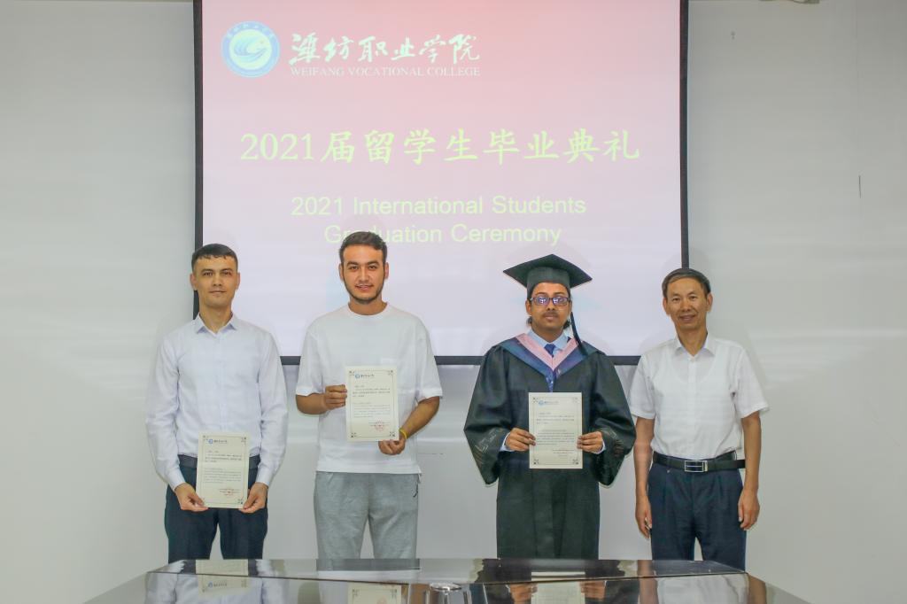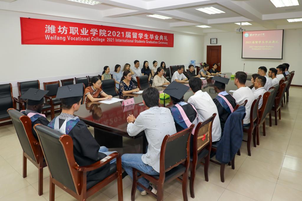 7月8日上午,学校2021届留学生毕业典礼在奎文校区11号楼会议室举行。学校副校长李瑞昌、国际教育天行体育官方网站和国际商务天行体育官方网站相关负责人和任课教师、班主任以及全体在校留学生参加典礼。