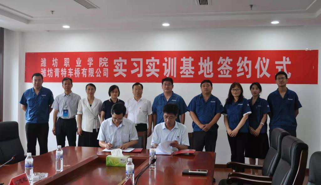 为不断提高联系服务企业工作水平,做实联系服务企业活动,促进校企业合作共赢,7月6日,学校副校长贺志强带领监察审计处、教师工作部、科技处、汽车工程天行体育官方网站主要负责人,到学校联系服务企业举行校企合作签约,并为潍坊青特车桥有限公司“天行体育官方网站实习实训基地”、诸城大舜汽车科技有限公司“天行体育官方网站教师工作站”揭牌。
