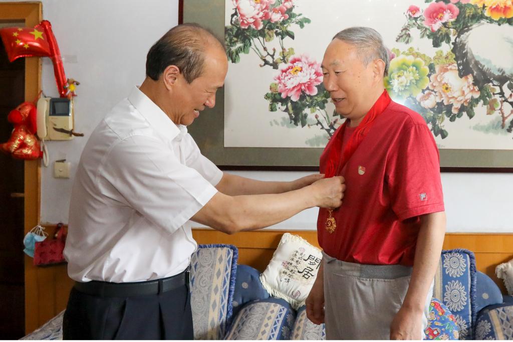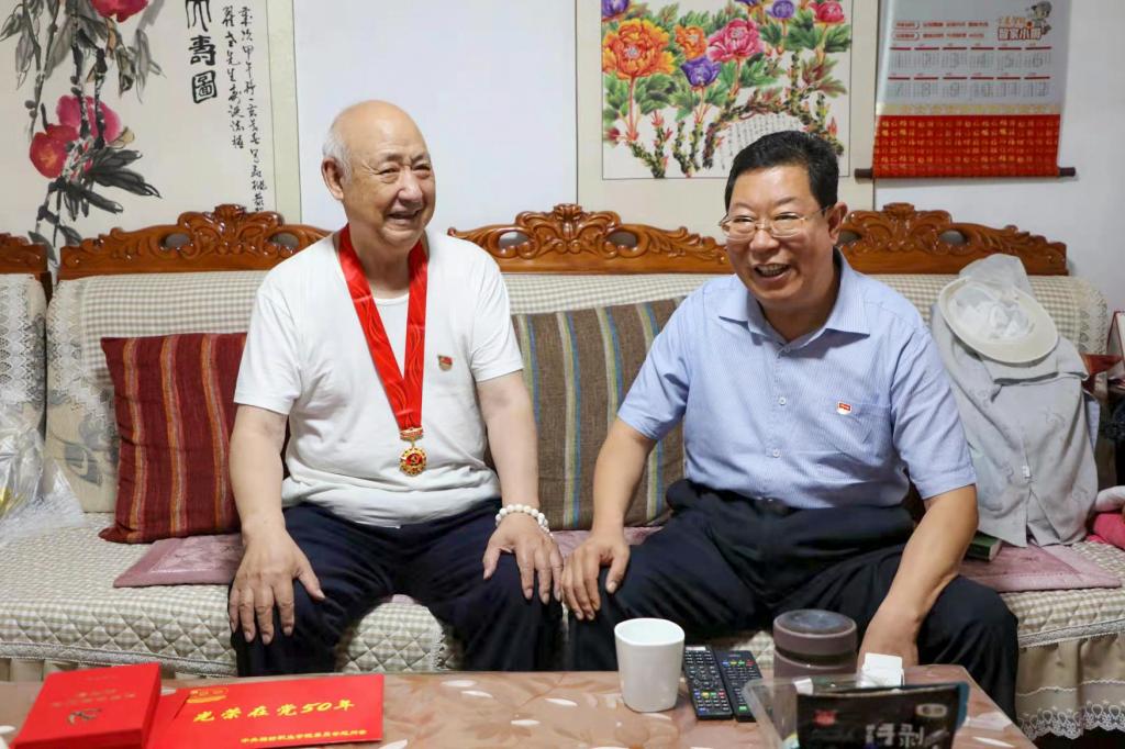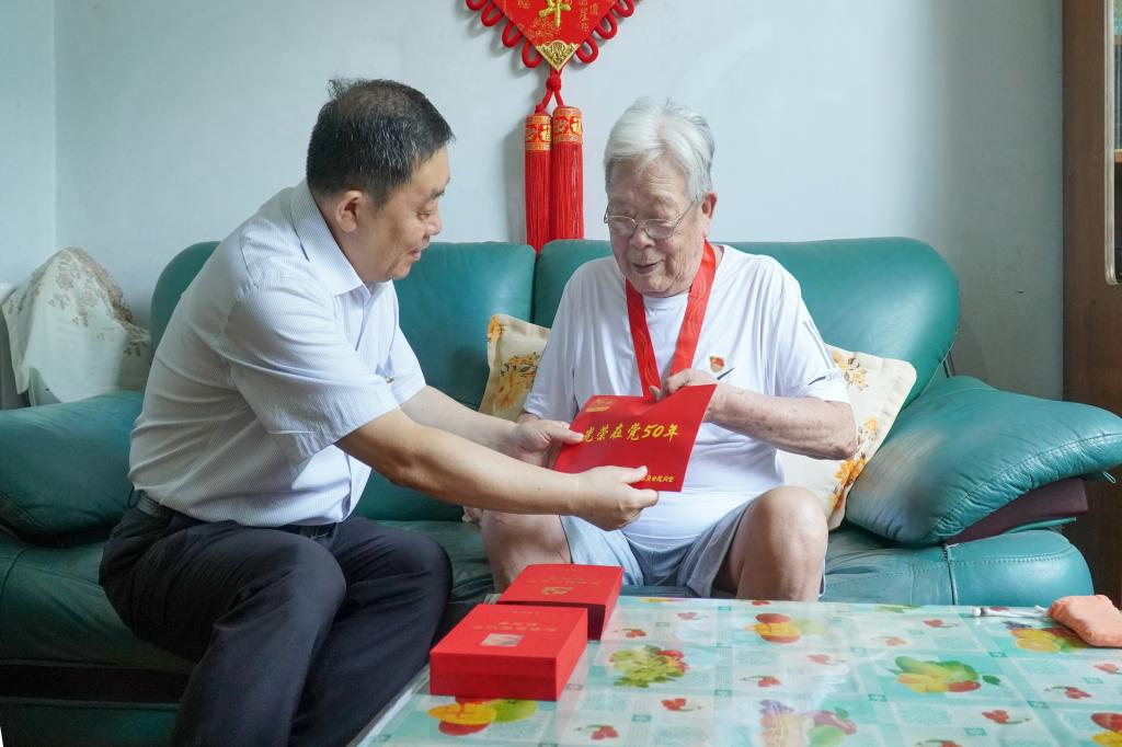 在中国共产党迎来百年华诞之际,按照中央部署和省委、市委安排, 6月26日至27日,天行体育官方网站党委组织所有党政领导班子成员登门为每一位在党50年以上老党员颁发“光荣在党50年”纪念章,为他们送去党组织的关怀,并向他们致以崇高的敬意和节日问候。