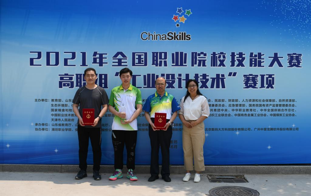 6月20日至22日,2021年全国职业院校技能大赛高职组“工业设计技术”赛项在潍坊举行,来自全国28所高职院校的选手参加了本次比赛。我校选派2019级机电一体化技术3班学生高一鸣,指导教师张增渠组成的山东省参赛队荣获一等奖。
