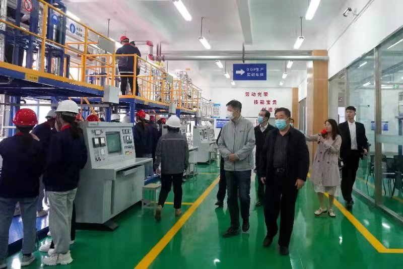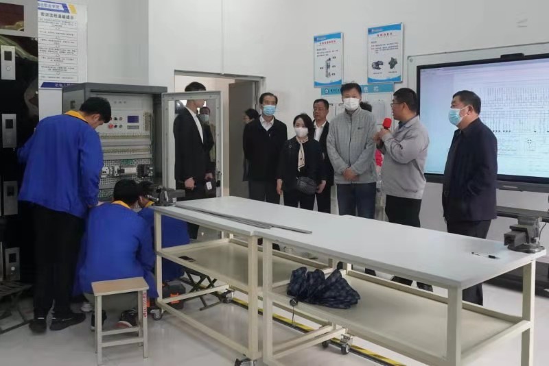宋桂言陪同参观学校实习实训室。(王宇供稿)