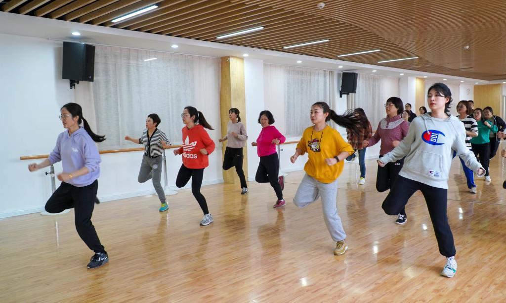 为进一步丰富广大教职工业余文化生活,提升健康水平和生活品质,4月12日下午,学校教职工体育运动项目学习培训健美操项目在木泽楼4楼形体室开班,工会主席、工会女职工委员会主任参加了开班仪式。
