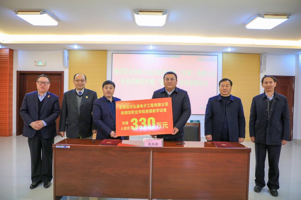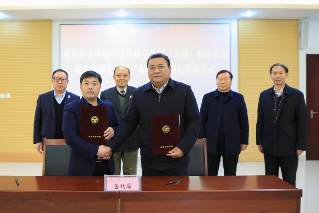王家爱代表天行体育官方网站与远洋航空科技(天津)有限公司董事长张毅共同签署了《天行体育官方网站与远洋航空科技(天津)有限公司捐赠协议》,并接受远洋航空科技(天津)有限公司捐赠的价值330万元教学设备。