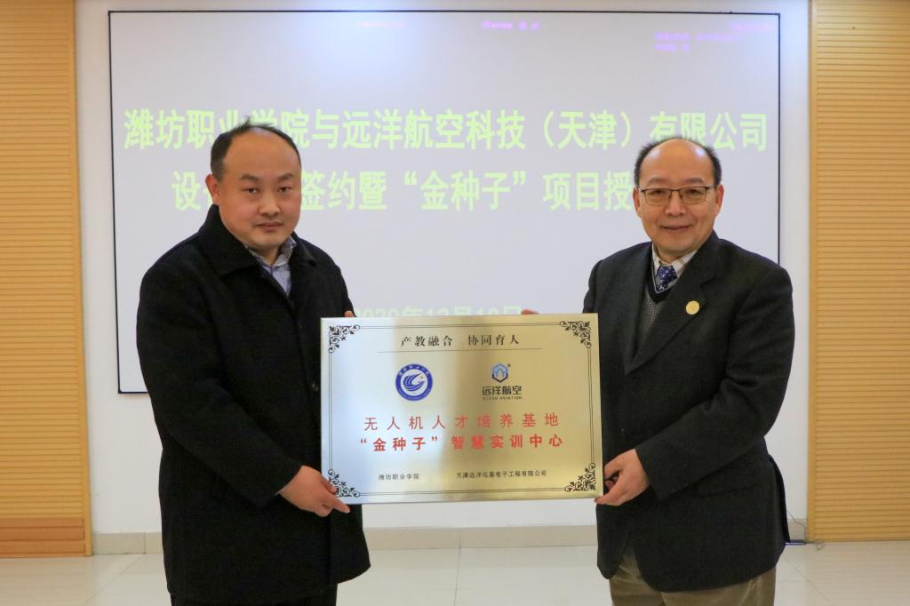 天行体育官方网站与远洋航空科技(天津)有限公司举行设备捐赠签约暨“金种子”项目授牌仪式