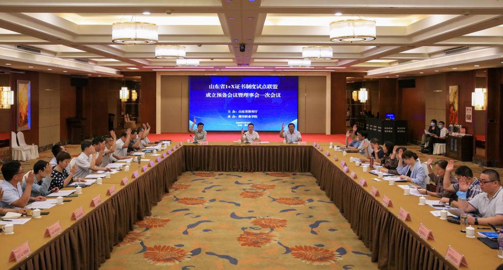 会上,王家爱介绍了山东省1+X证书制度试点联盟成立筹备情况。会议审议通过了《山东省1+X证书制度试点联盟章程(草案)》《山东省1+X证书制度试点联盟理事会选举办法(草案)》,推选了山东省1+X证书制度试点联盟第一届理事会理事单位,我院被推选为理事长单位。