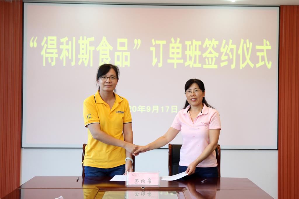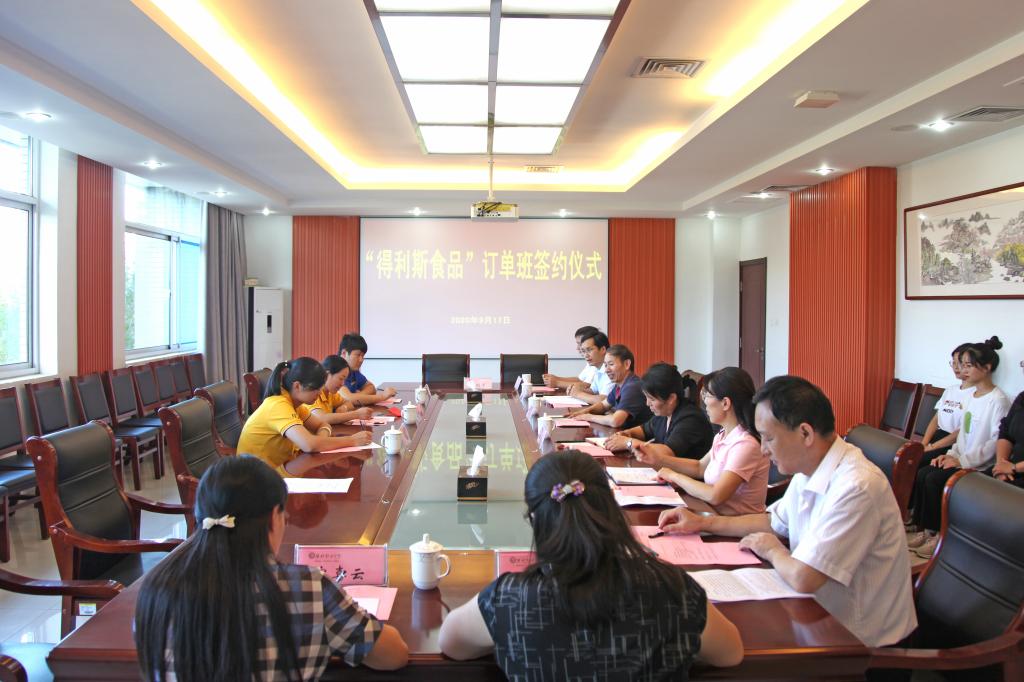 9月17日下午,天行体育官方网站与得利斯食品有限公司“得利斯食品订单班”签约仪式在滨海校区清泽楼222举行。天行体育官方网站副院长李瑞昌、教务处、科技处负责同志出席会议,得利斯食品有限公司人力资源部经理庄玉萍一行,食品药品天行体育官方网站班子成员和食品专业骨干教师代表参加会议。