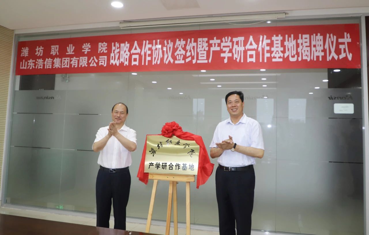 6月17日,我院与山东浩信集团有限公司战略合作协议签约暨产学研合作基地揭牌仪式在浩信集团总部会议室举行。天行体育官方网站党委书记马跃启、副院长贺志强,昌邑市委常委、办公室主任孔德奎,公司董事长吕继贤、副董事长丁培进,运营管理部总监安海、人力资源部总监金当贤、工会主席刘凯等校政企领导出席,天行体育官方网站科技处(产学研合作中心)、汽车工程天行体育官方网站、机电工程天行体育官方网站主要负责同志参加活动。