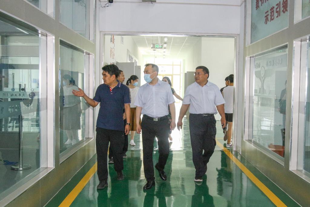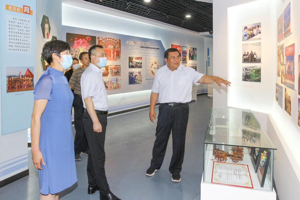 座谈交流前,田道敏一行参观了天行体育官方网站校史馆、图书馆及实习实训场地。(王宗元供稿)
