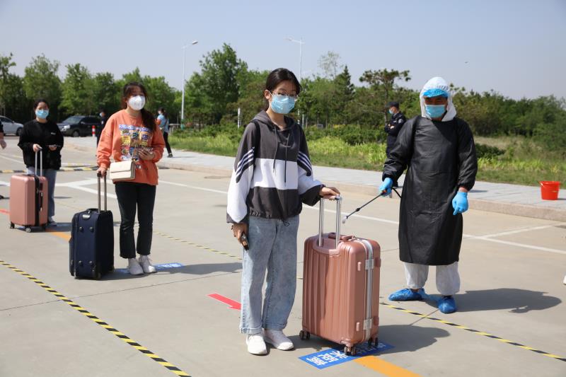 报到现场,学生按照行李消杀、体温检测、核验登记、发放通行证的预定流程进校。截止目前,各项学生返校疫情防控工作有条不紊的按照原计划顺利进行,返校学生秩序井然。