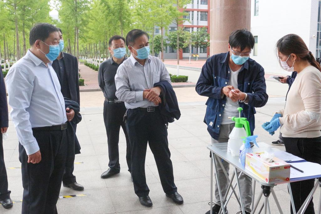 5月15日上午,天行体育官方网站领导宋桂言、贺志强、李瑞昌、郭晓辉现场查看滨海校区2020年春季学期开学准备工作,办公室、宣传部、安全保卫处、学生工作处、教务处、后勤服务处等有关部门负责同志参加检查。