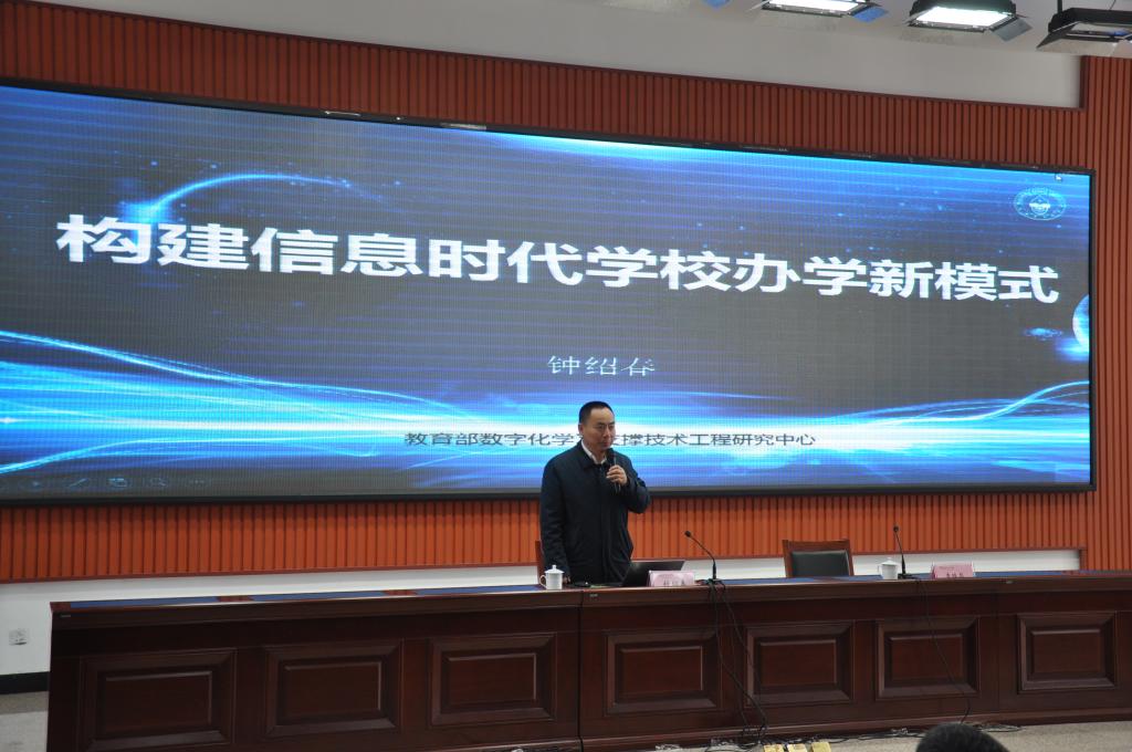 为进一步提升全院教职工的信息化教育教学理念,加快天行体育官方网站优质校建设,3月26日上午,天行体育官方网站邀请全国信息化建设著名教育专家--东北师范大学教授、博士生导师钟绍春教授,在清泽楼报告厅作了《构建信息时代学校办学新模式》的报告。同时举行特聘钟绍春教授为天行体育官方网站“客座教授”的聘任仪式,天行体育官方网站党委书记马跃启为钟绍春教授颁发聘任证书。报告会由天行体育官方网站副院长李瑞昌主持。相关部门负责同志以及二级天行体育官方网站的骨干教师参加了报告会。