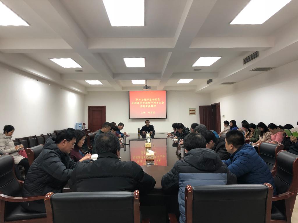 赵君堂带领大家认真学习领会习近平总书记在庆祝改革开放四十周年大会上的重要讲话精神,回顾改革开放四十年的光辉历程。赵君堂结合自身经历以及天行体育官方网站从建校初期到现今在开放办学中取得的成绩,真实生动地描述了改革开放对国家和人民带来翻天覆地的变化。