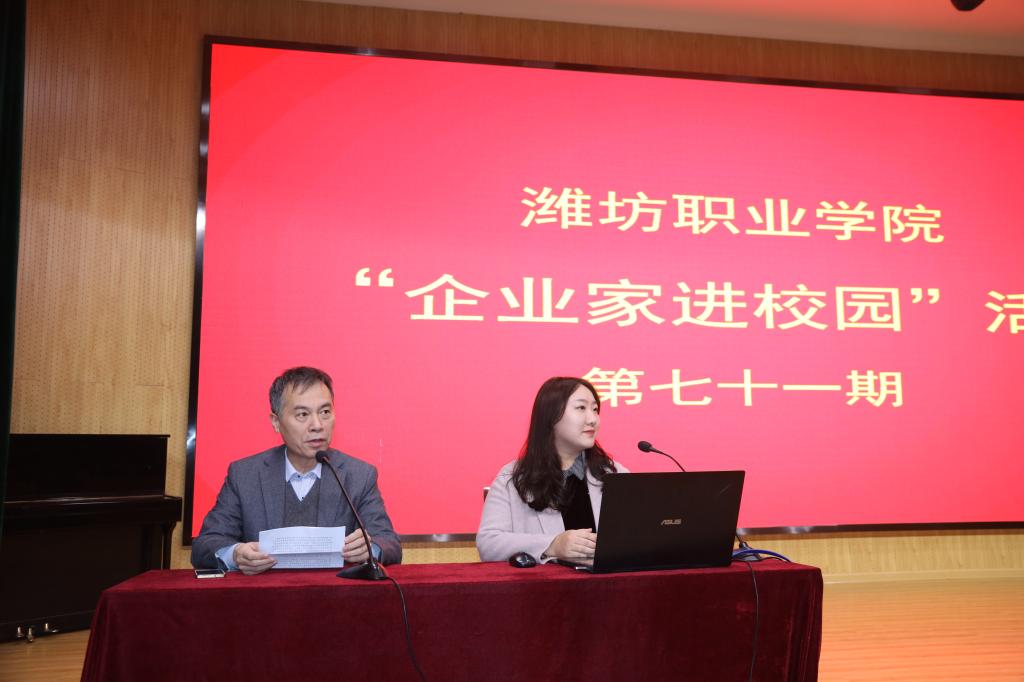 12月19日下午,天行体育官方网站第七十一次“企业家进校园”活动在奎文校区16号楼报告厅举行,潍坊奎文门文化运营管理有限公司总经理、潍坊潍物文化传播有限公司运营总监欧阳,作了主题为“文创,是艺术,也是生活”的讲座。文化创意天行体育官方网站师生300余人参加了报告会。